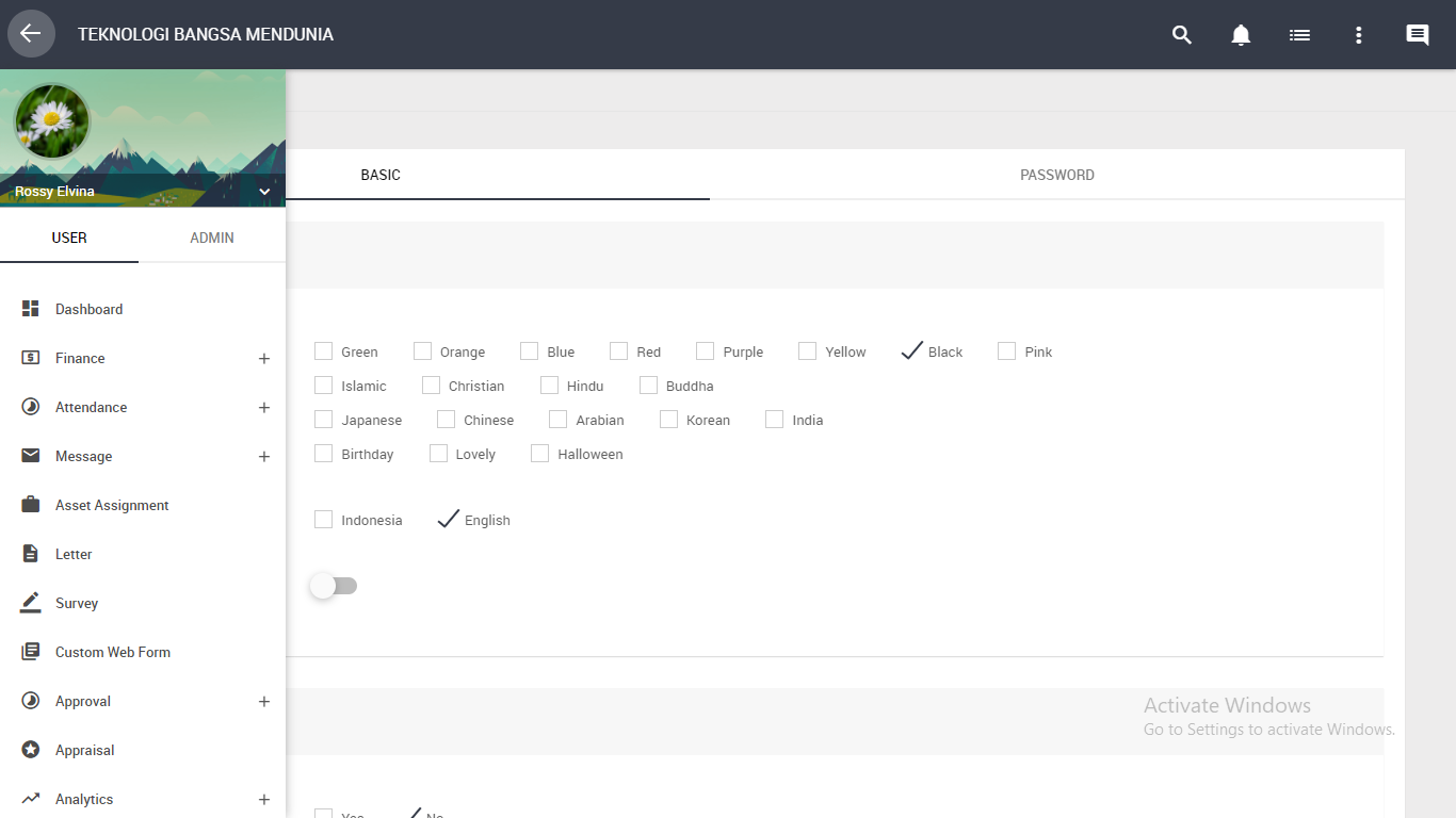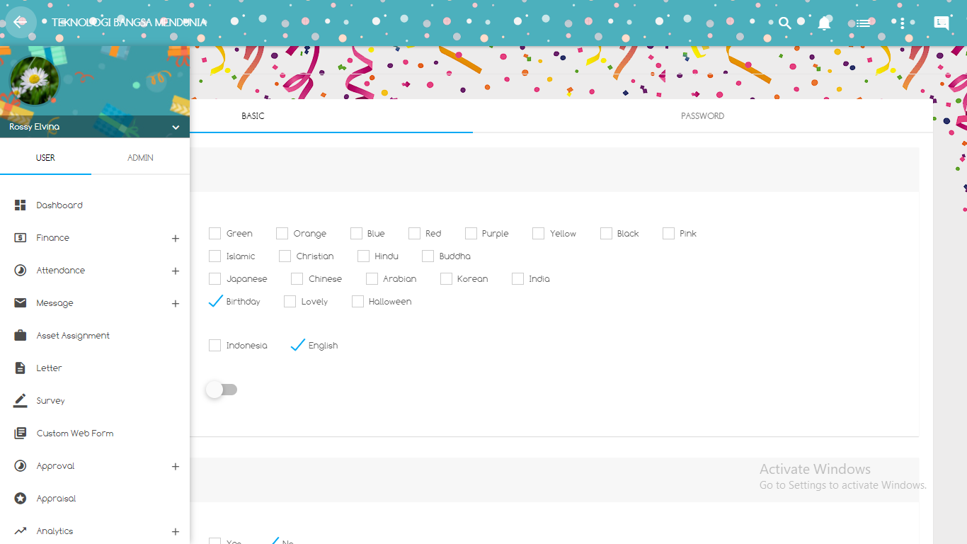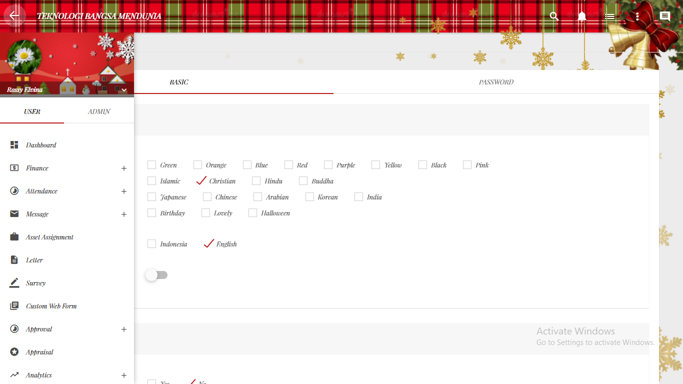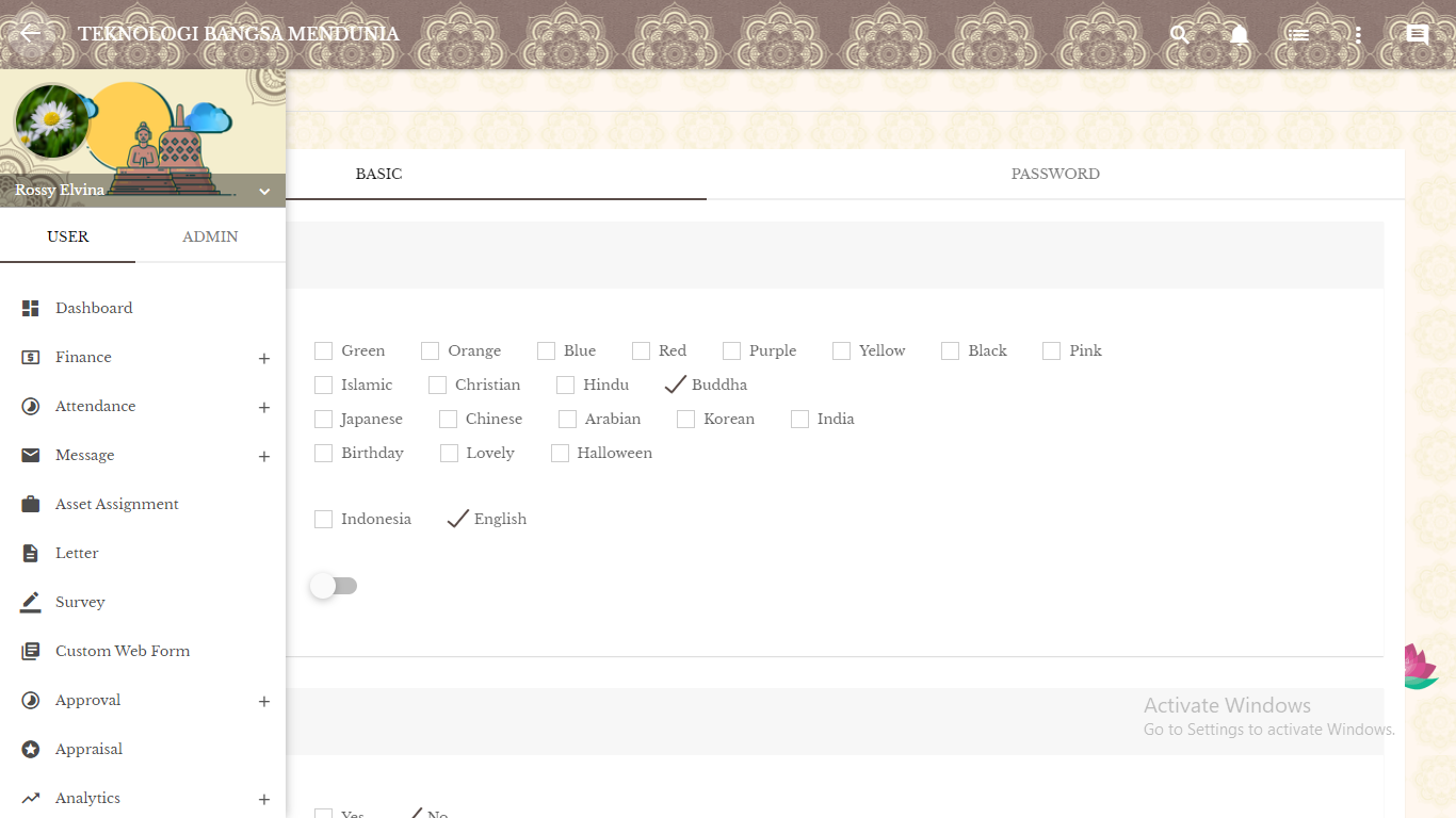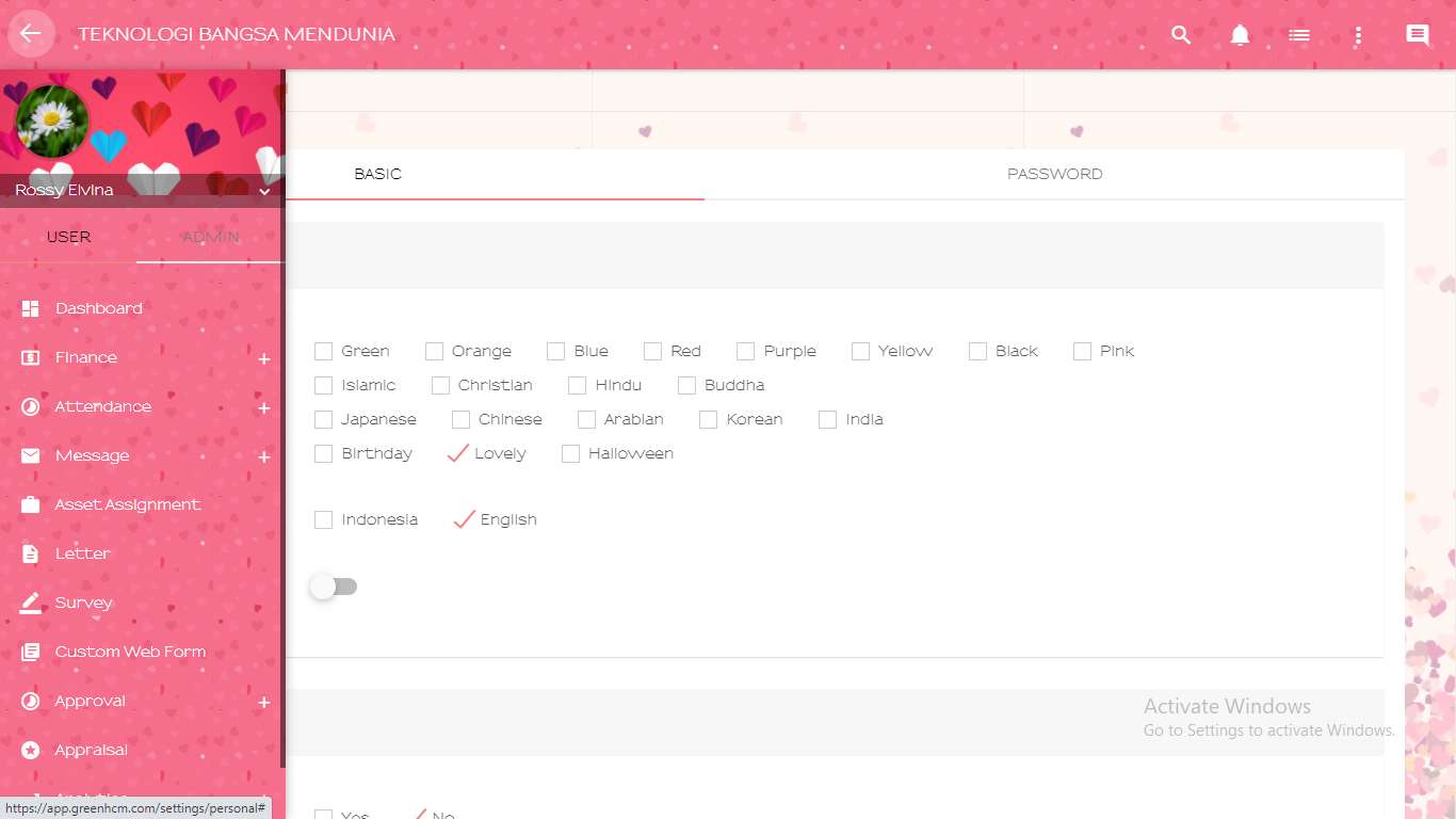Menu Setting berfungsi untuk melakukan perubahan pada tampilan tema, bahasa, dan kata sandi.
