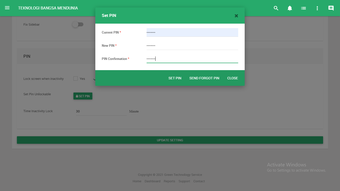 Sebagai catatan, untuk pengguna baru Anda harus membuat PIN default GreenHCM terlebih dahulu, kemudian Anda dapat mengganti PIN nya.